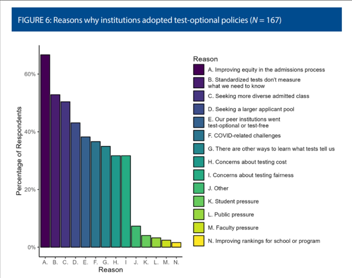 During the COVID-19 pandemic, many colleges and universities reduced admissions testing requirements, either becoming test-optional (considering test scores if submitted) or test-free (not accepting test scores at all). However, many of those policies were set to expire within 2 to 5 years. Several prominent institutions, such as MIT and the University of Georgia, returned to requiring standardized testing in 2022, followed by Dartmouth, Brown, UT Austin, Yale, and Johns Hopkins, citing the value of tests for identifying strong candidates from diverse backgrounds. Should others follow suit?